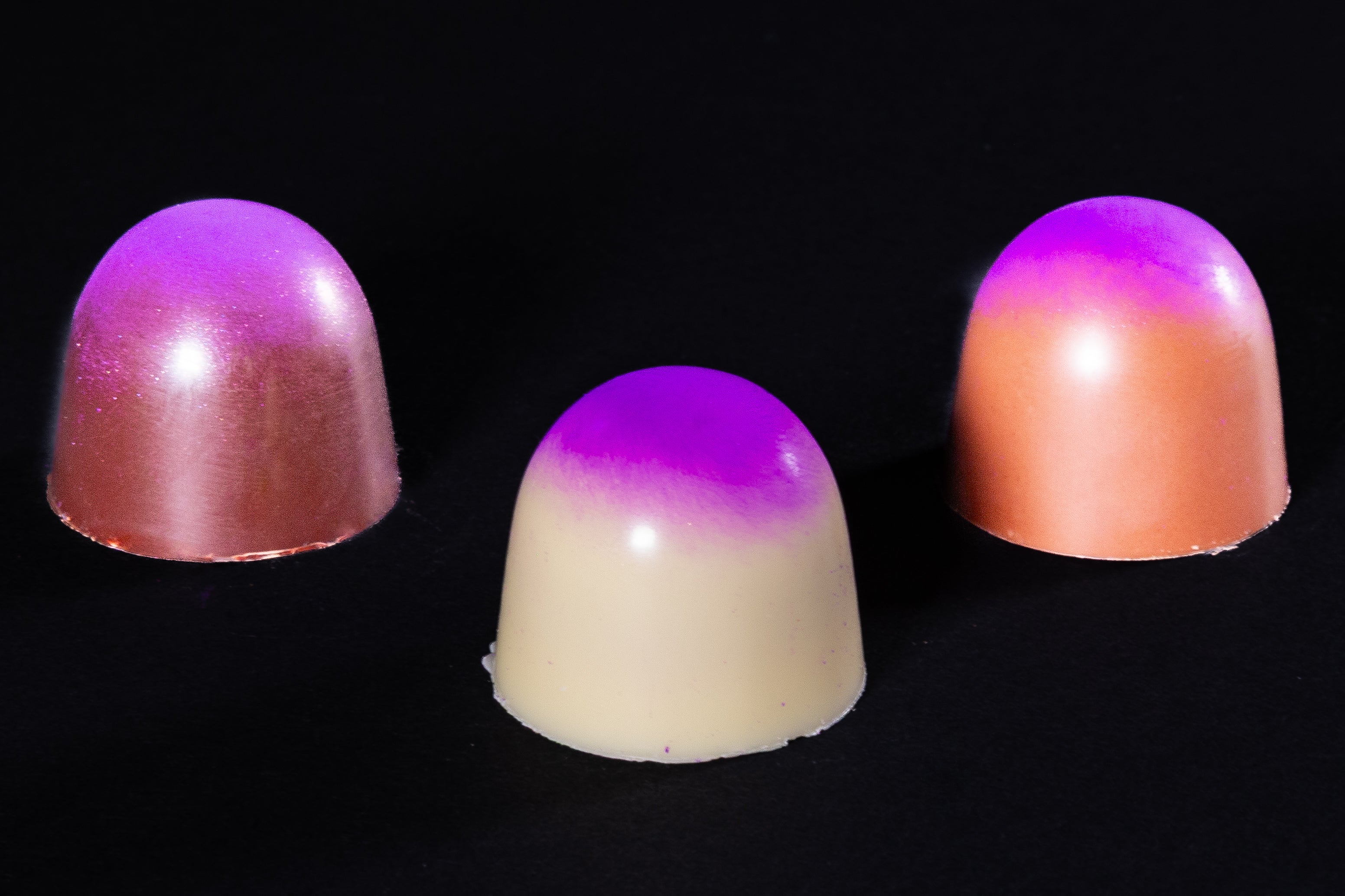 Ingredients: Callebaut Chocolate, Creamy Fondant, Freeze Dried Blackberries, Aged Oak Balsamic Vinegar. Enrobed in White, Milk or Dark Callebaut Chocolate.
