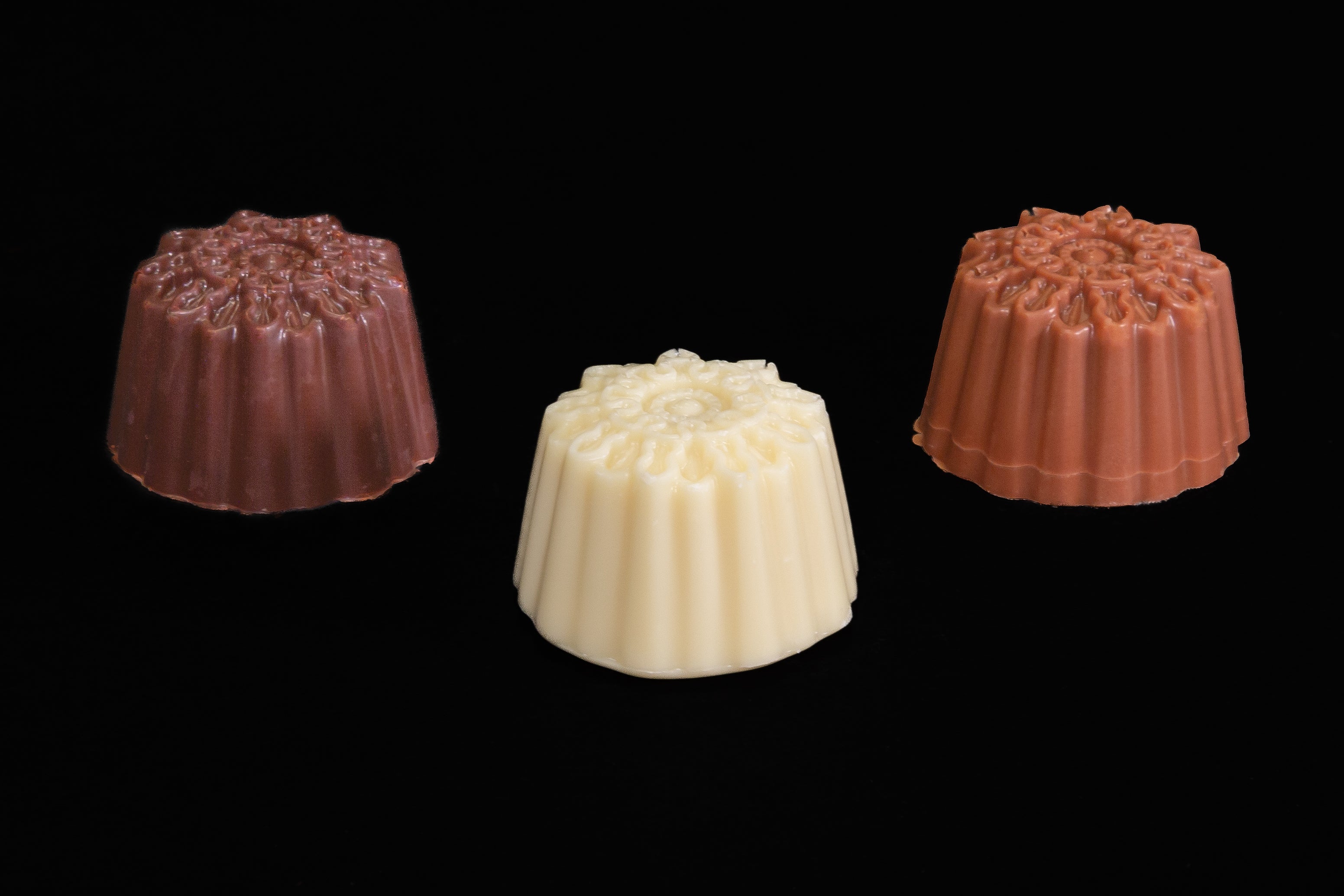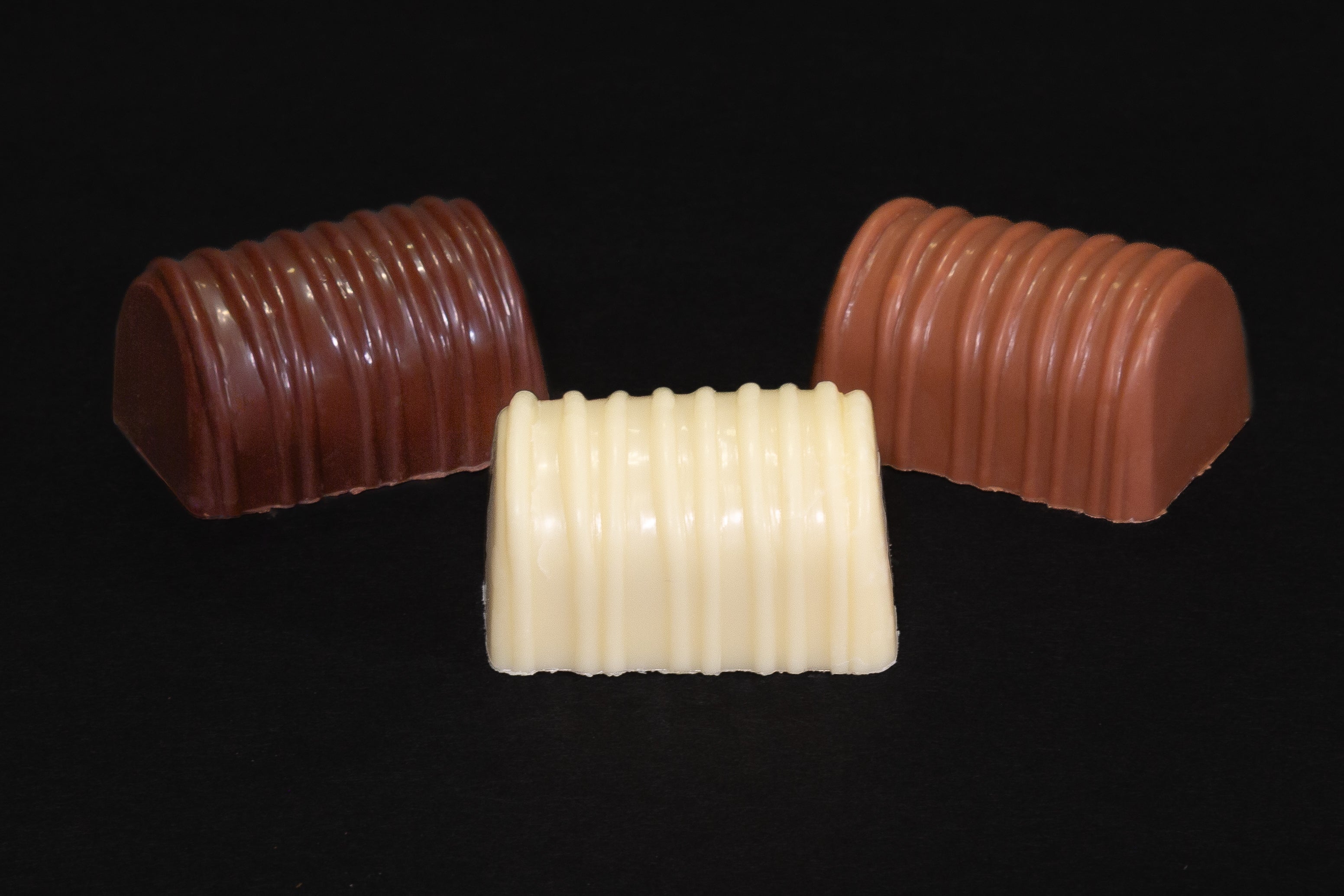 Ingredients: Callebaut Chocolate, Creamy Fondant, Blackstrap Molasses, Spice. Enrobed in White, Milk or Dark Callebaut Chocolate.