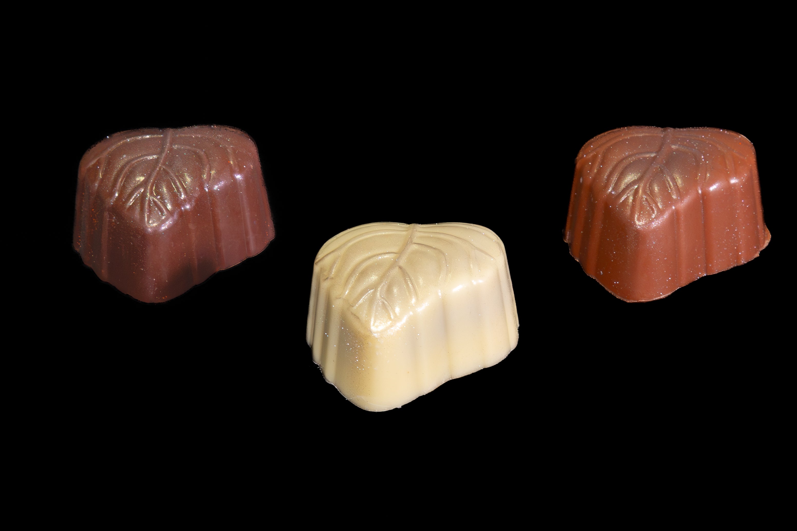Ingredients: Callebaut Chocolate, White Chocolate Ganache, Pumpkin Flavor and Spice. Enrobed in White, Milk or Dark Callebaut Chocolate.